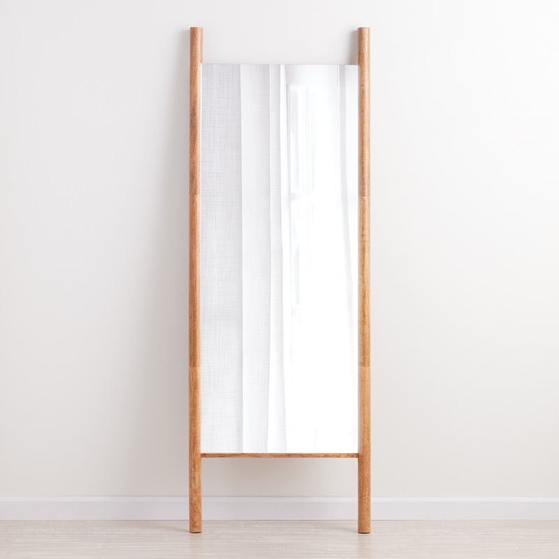 Crafted by artisans of Saharanpur, India - famous for its wood carving industry - our exclusive floor-length ladder-style mirror is made from mango wood. Designed to lean against a wall, it has a framed bottom and an open top. Its minimalistic natural fini